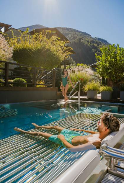 Bei uns sind Sie das ganze Jahr an der Pool-Position. Das Andreus Hotel mit Pools in Südtirol bietet ein Badeparadies inmitten der beeindruckenden Berglandschaft des Meraner Landes. Tauchen Sie in unseren 7 Pools ab und genießen Sie im mediterranen Hotelgarten eine Auszeit, als wären Sie im Urlaub am Meer, wenn der Wind durch die Olivenbaumblätter weht und die Palmen sanft rascheln.