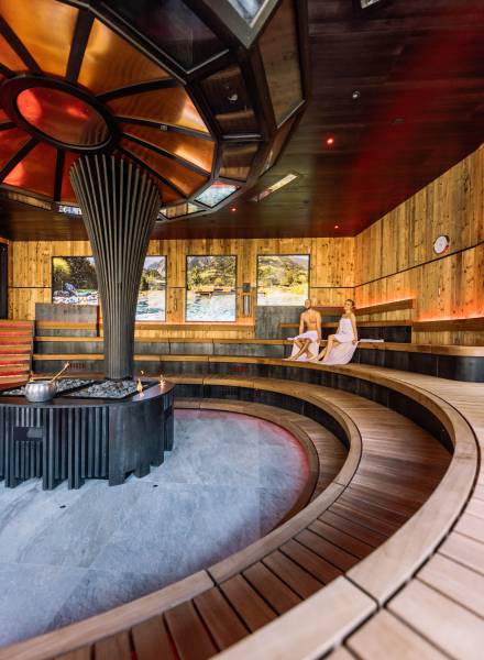 Disintossicazione, relax, esperienza – da molte centinaia di anni la sauna è considerata fonte di vitalità, serenità e rigenerazione, oltre a rinforzare il sistema immunitario. La zona saune di 2.500 m² dell’Andreus è un vero paradiso per gli amanti del genere. Provate le 10 diverse saune del nostro hotel in Alto Adige. Vivete un’avventura nella DOME Event Sauna - la più grande event sauna delle Alpi! Godetevi la fantastica vista panoramica a 360° sulle montagne circostanti mentre sudate nella Sky Sauna o assorbite la forza della natura della sauna alle erbe. Abbiamo pensato anche al raffreddamento successivo.