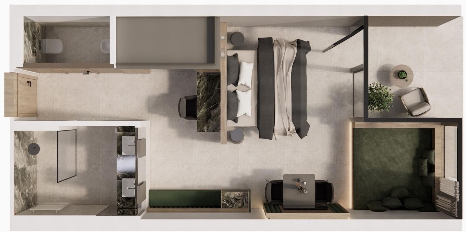 NOVITÀ 2025 Circa 45-50 m² inclusa loggia di 5 m² rivolta a sud. Ampia camera matrimoniale con vista sulla natura, angolo panoramico "View Corner" – spazioso angolo accogliente con grande finestra panoramica, aria condizionata, macchina da caffè e bollitore, bagno con doccia, doppio lavandino, WC separato. Collegamento interno alla casa principale Andreus.